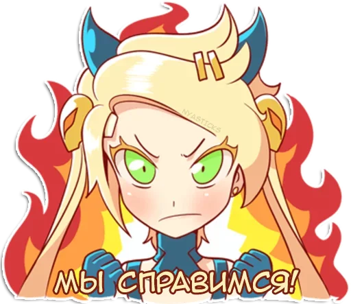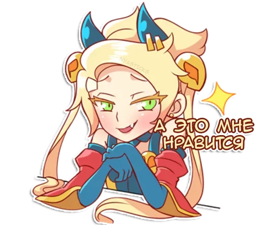Стикеры «Демон-тян» относятся к тегам статичных стикеров, стикеры. Попробуйте посмотреть другие стикеры по этим тегам.
