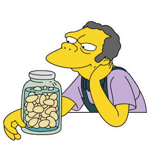 Статичные стикеры с любимым барменом Мо Сизлаком из культового мультсериала «Симпсоны». Эти стикеры идеально передают весь спектр эмоций Мо, от его фирменной угрюмости до редких проявлений доброты, добавляя юмора и сарказма в любую переписку. Прекрасно подойдут для тех, кто ценит классический юмор и характерных персонажей.