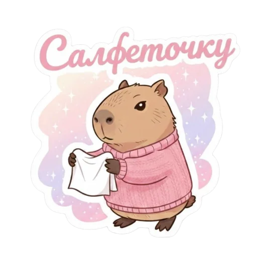 Стикеры «Capybarochka от» относятся к тегам статичных стикеров, стикеры. Попробуйте посмотреть другие стикеры по этим тегам.