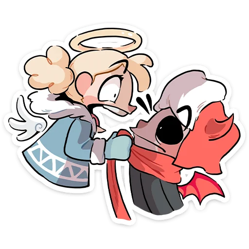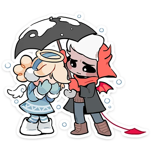 Стикеры Telegram «Зимние Нимб и Рожки ::» (ID: winterhaloandhorns) — это популярный набор.