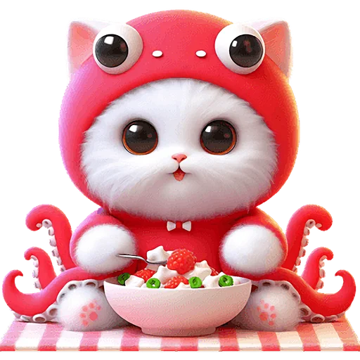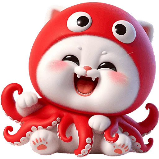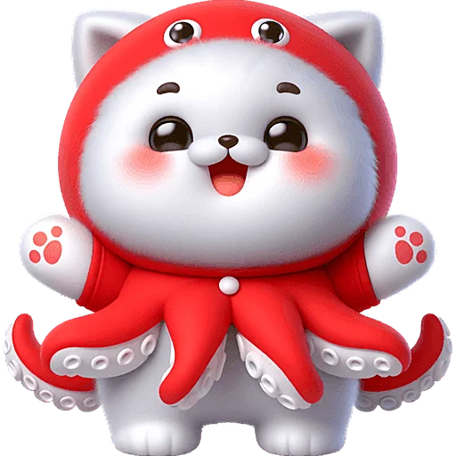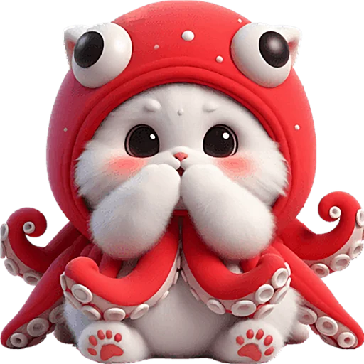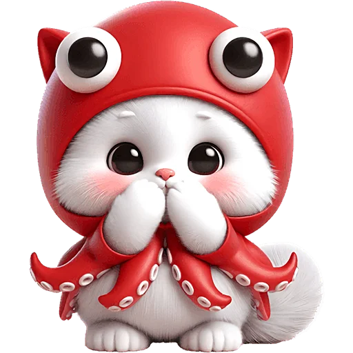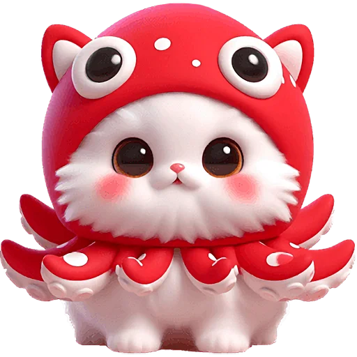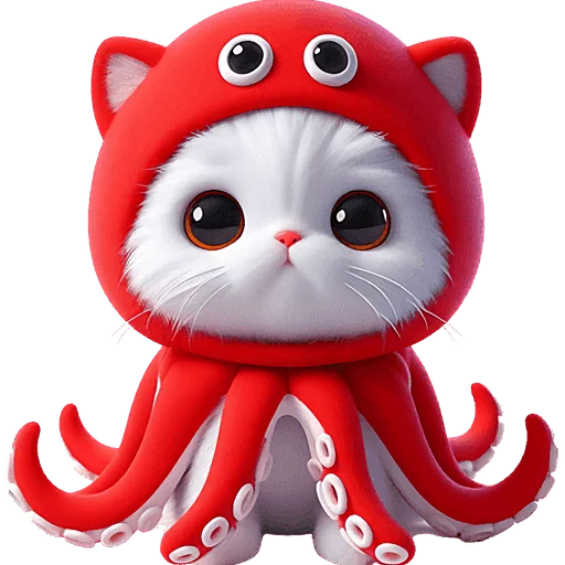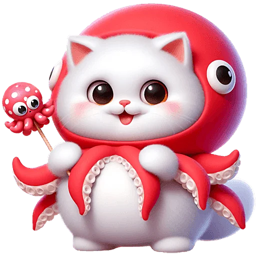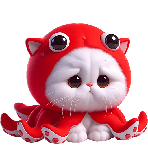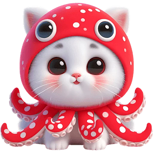 Забавный и оригинальный набор стикеров, представляющий уникального кота-кальмара. Эти яркие и выразительные изображения прекрасно подойдут для того, чтобы добавить юмора и милоты в любую беседу, передавая широкий спектр эмоций и настроений.