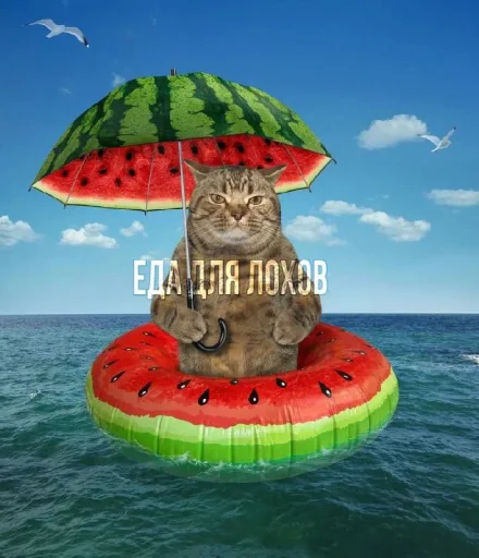 Стикеры «Кот с арбузом» относятся к тегам статичных стикеров, стикеры. Попробуйте посмотреть другие стикеры по этим тегам.