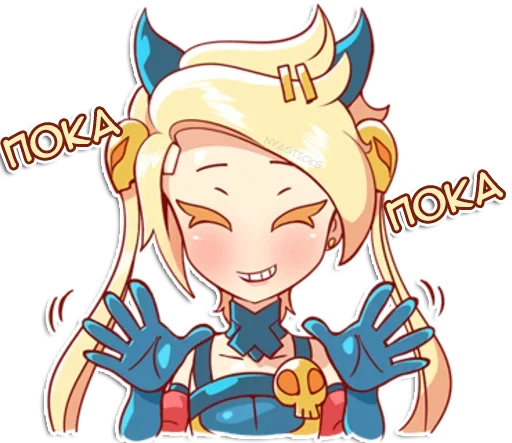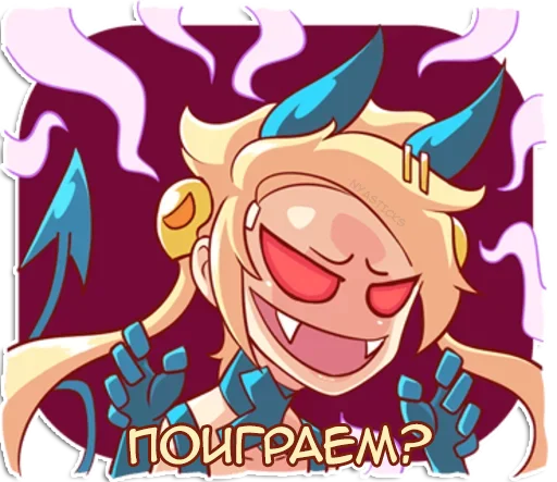 Стикеры «Демон-тян» относятся к тегам статичных стикеров, стикеры. Попробуйте посмотреть другие стикеры по этим тегам.