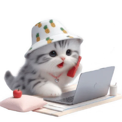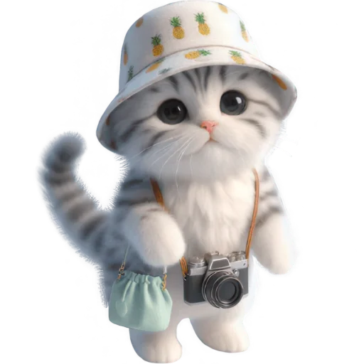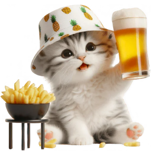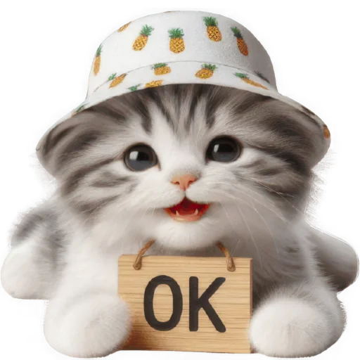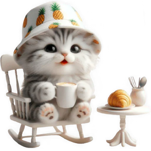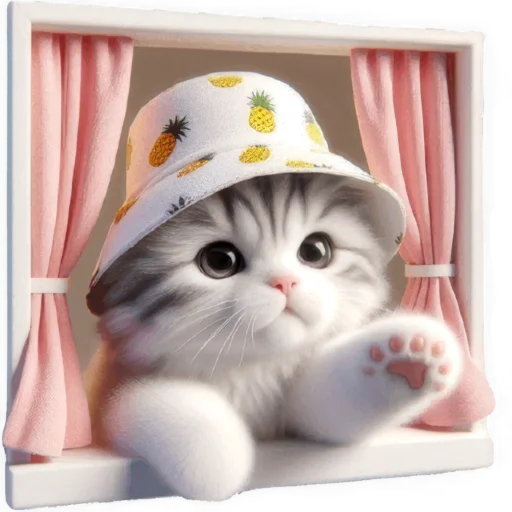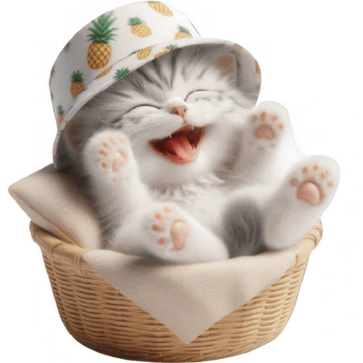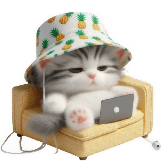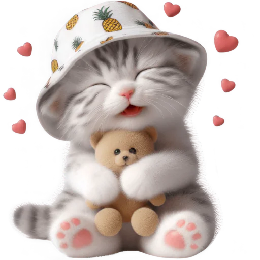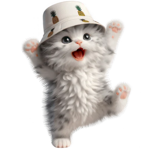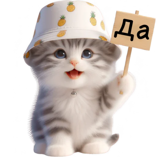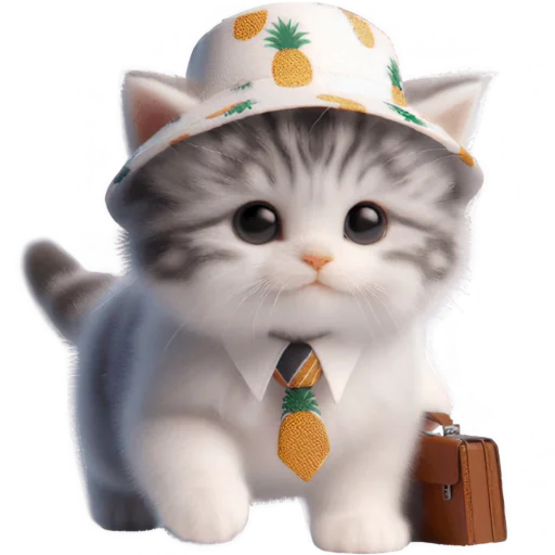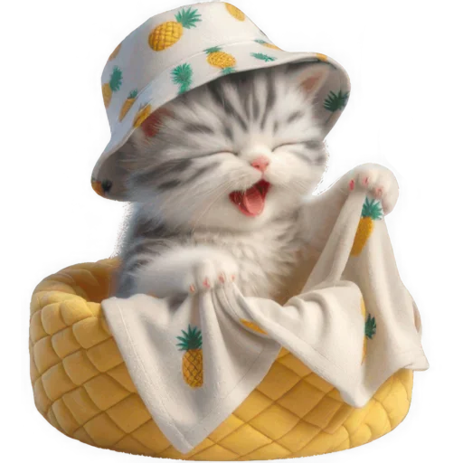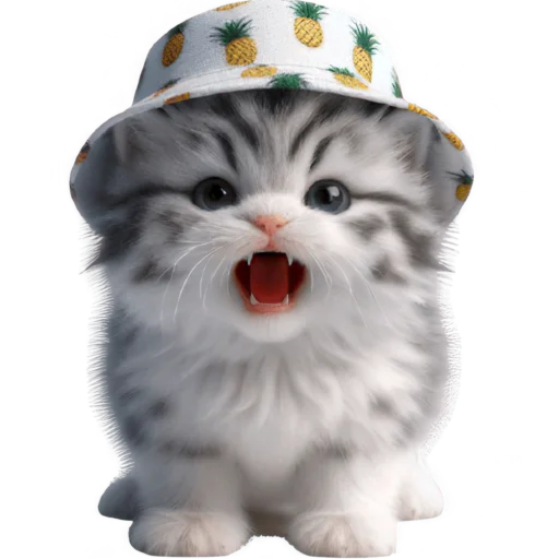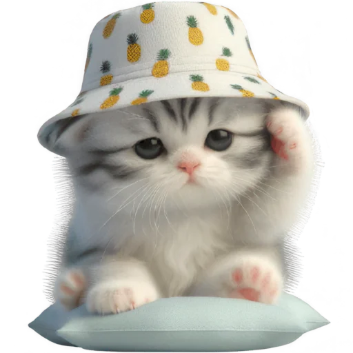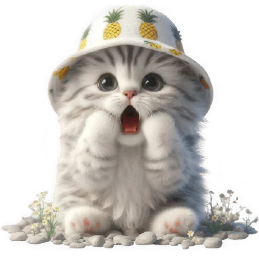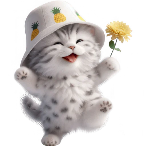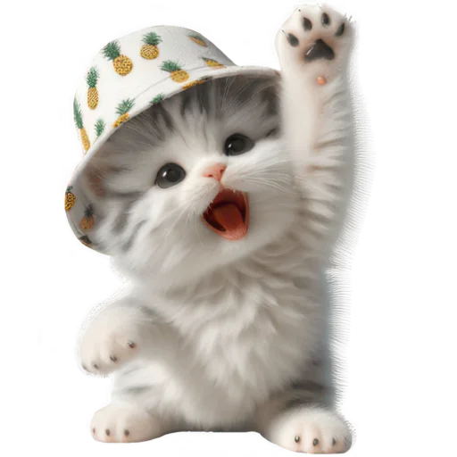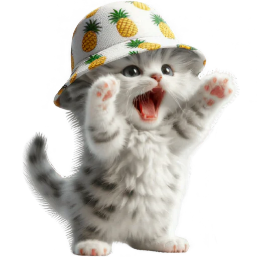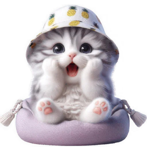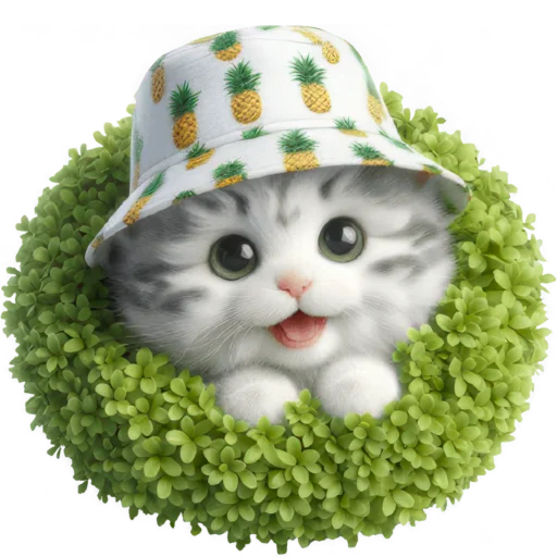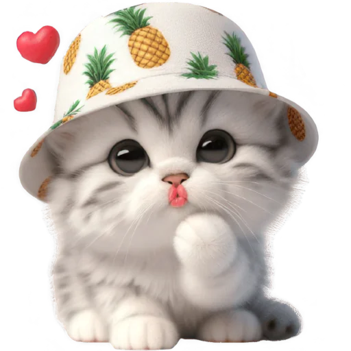 Стикеры Telegram «Котик в шляпе-ананасе @Nyasticks» (ID: Cute_Kitten_Ananas_Nyasticks)