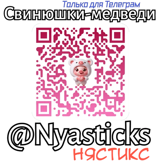 Стикеры «Свинюшки-медведи @Nyasticks» относятся к тегам статичные, стикеры. Попробуйте посмотреть другие стикеры по этим тегам.