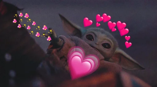 Стикеры «Baby Yoda» относятся к тегам статичных, стикеры. Попробуйте посмотреть другие стикеры по этим тегам.