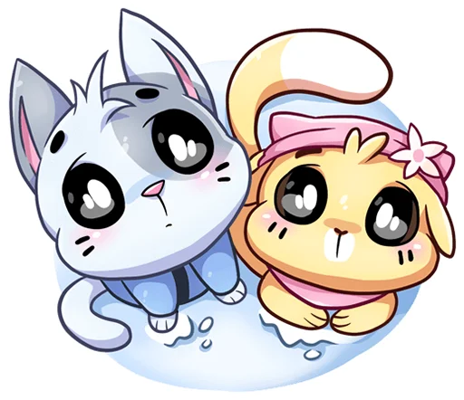Погрузитесь в уютную зимнюю атмосферу с милыми персонажами Бисквитом и Ванилькой. Этот набор статичных стикеров передает тепло и радость холодных дней, идеально подходя для выражения нежных чувств и создания праздничного настроения в переписках.
