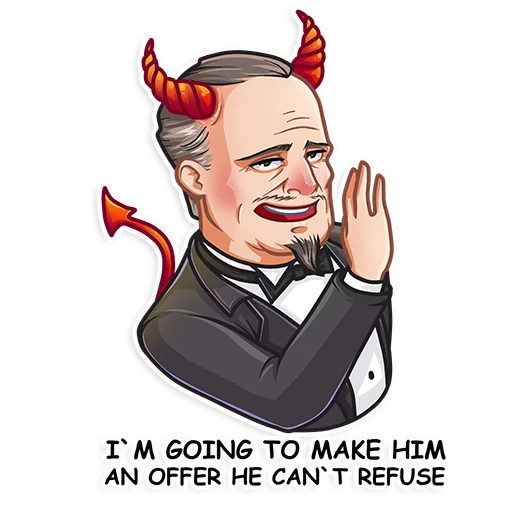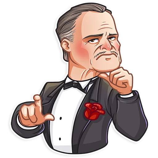 Статичные Стикеры Telegram «Don Corleone» (ID: Don_Corleone) Окунитесь в атмосферу культовой классики с набором стикеров, посвященных легендарному Дону Корлеоне. Эти стикеры передают всю мудрость, харизму и неповторимый стиль одного из самых знаковых персонажей в истории кинематографа. Добавьте серьезности и элегантности вашим перепискам, используя узнаваемые образы и выражения. Коллекция включает 40 статичных стикеров в формате WEBP, каждый из которых идеально подходит для передачи широкого спектра эмоций и настроений. Все изображения доступны для быстрого просмотра и использования в удобном плеере Telegram, обеспечивая мгновенный доступ к вашим любимым стикерам. дон корлеоне don corleone крестный отец мафия кино классика Добавьте стикеры Don Corleone в Telegram